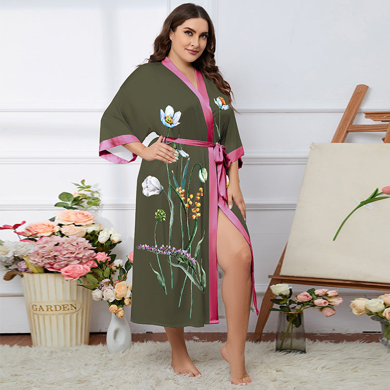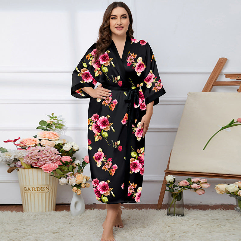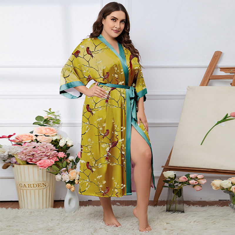 Satin Pajamas Women's Summer Light Luxury Bathrobe Homewear
